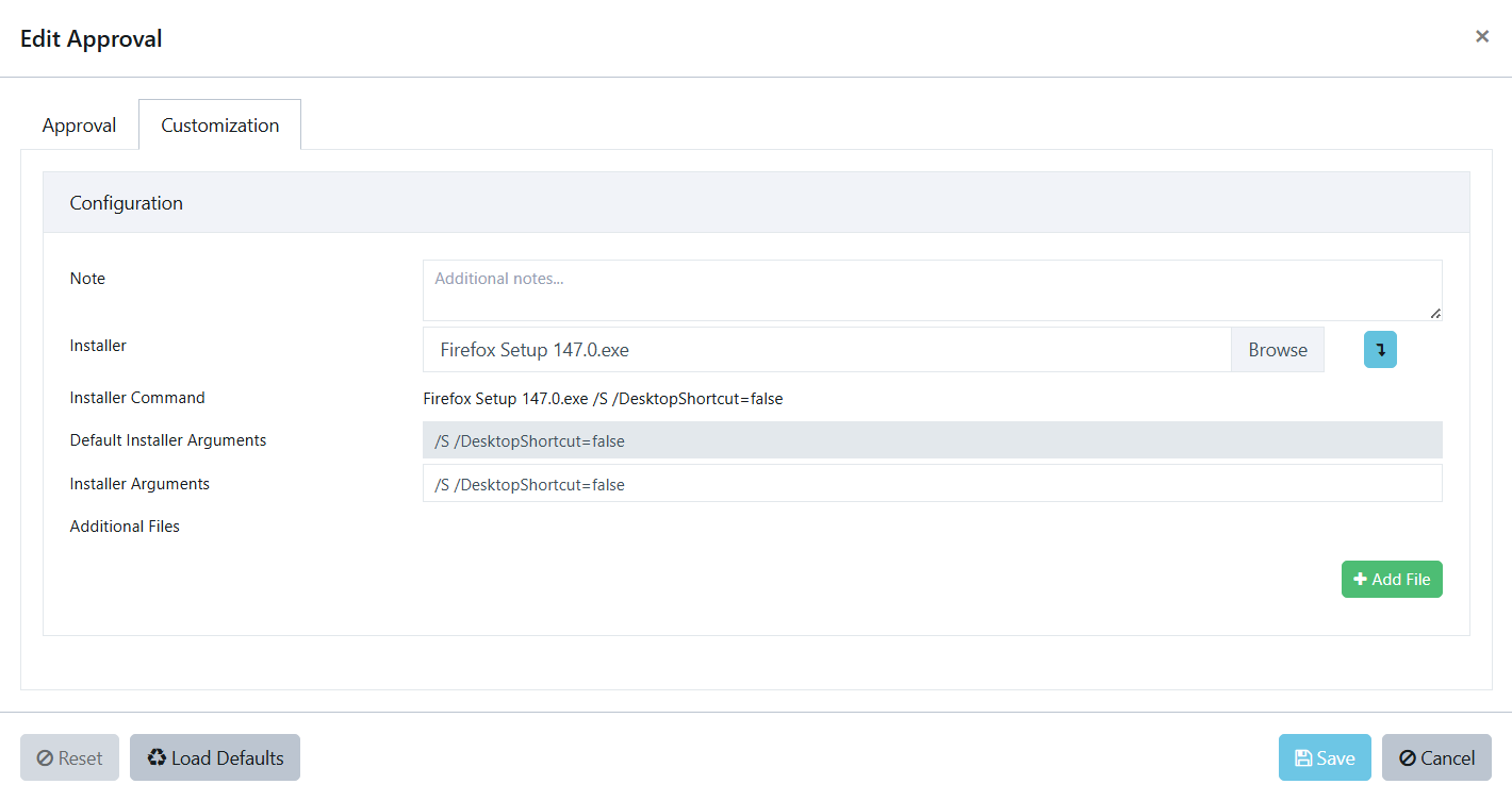 When patching Mozilla Firefox with VulnDetect, use Advanced Customization only to pass supported installer arguments.