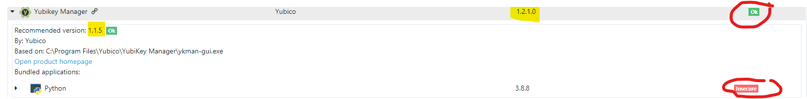 [Solved] Yubikey manager: not displayed as insecure with an embedded insecure python and lower version recommended