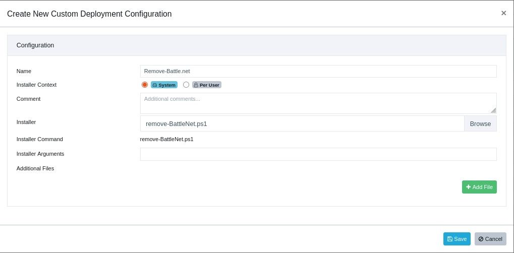 Because the Battle.net uninstall string does not support silent parameters, we created a PowerShell script that removes the application completely, including any leftover files and registry entries.